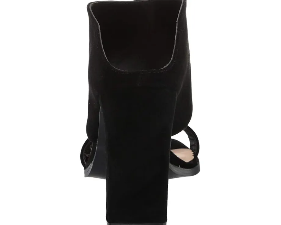 - Heeled sandals feature a suede leather upper.