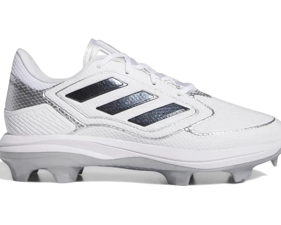- Put your team at the top in the adidas® Adizero Purehustle 3 Softball Cleats Softball cleat. These cleats come with a synthetic and textile upper, textile lining, and removable textile footbed that makes the construction tough and lasting. These have a round toe shape, lace-up closure for adjustability, and signature three-stripe branding on the side panels.