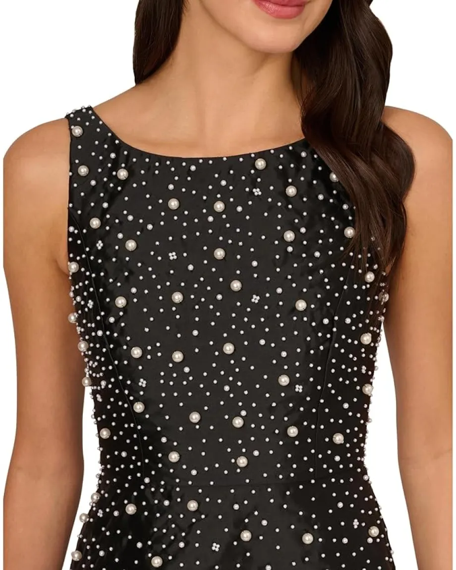 - Illuminate the night in the Adrianna Papell® Bead Taffeta Midi Dress, where intricate embroidery dances across the fabric like constellations. With a graceful boat neck and a flattering fit-and-flare silhouette, this sleeveless wonder captivates effortlessly. Zippered closure ensures ease, making it a stellar choice for any soirée.