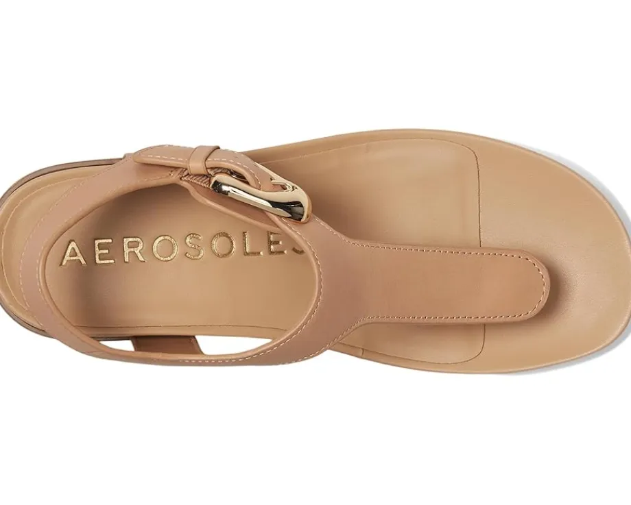 - The Aerosoles® California Block Heeled Thong Sandal combines style and comfort. The Diamond Flex Outsole provides traction, while the Molded Footbed offers personalized support. With a block heel, round toe, and bold buckle detail, it pairs perfectly with dresses or jeans for a chic look.