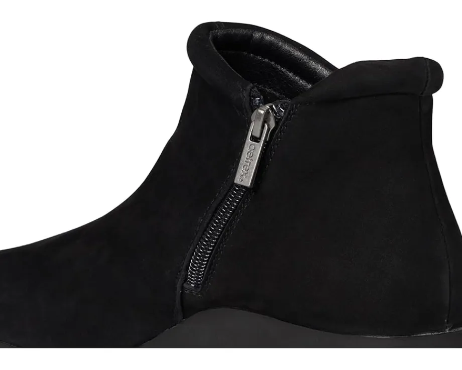 - Made for the Journey, Styled for the Spotlight, the Aetrex® Zoey is crafted from suede upper, polyester lining, and EVA insole. The Aetrex Orthotic System is built-In to every pair and features arch support that helps to stabilize your body, align your feet and relieve common foot pain. It comes with a closed round toe, mid-top silhouette, wedge heel, and zippered side closure.