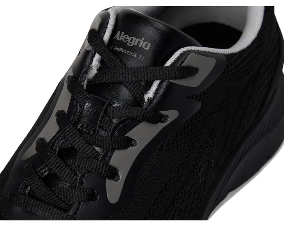 - The Alegria® Rize sneaker takes a contemporary turn in this lightweight mesh lace-up style detailed with a TPU graphic detail. The interior delivers on comfort and support with a padded heel quarter and removable molded footbed made of memory foam and cork. It features an ultra-lightweight ReBounce™ EVA outsole with durable rubber bottom.
