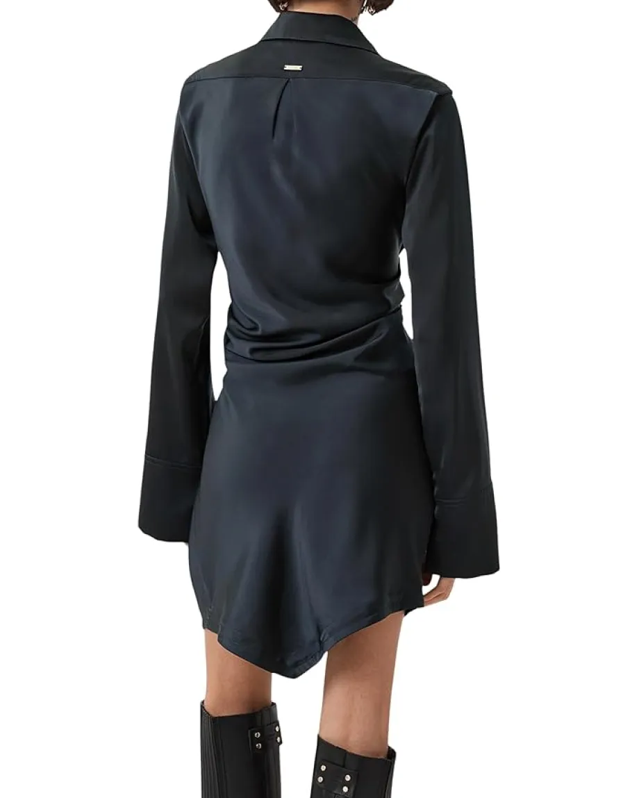 - Get ready to turn heads wearing the AllSaints™ Tira Mini Dress. With a chic, relaxed shirt collar, concealed zippered side closure, and elegant long sleeves with wide cuffs and splits, this dress is perfect for any occasion. The wrap silhouette and asymmetrical hem create a unique look that will make you stand out in style.
