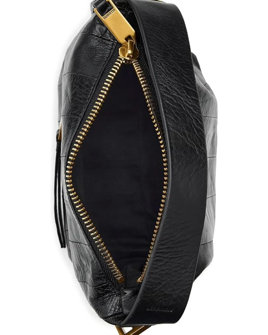 - Meet the AllSaints™ Vega Panel Grab Bag, a structured, modern essential that makes an instant statement. Crafted from premium cow leather for a luxe, long-lasting finish. Designed in a refined baguette silhouette, this shoulder bag blends minimalism with downtown edge, making it the perfect companion from daytime errands to evening plans. Its streamlined interior features one spacious compartment and an additional pocket, giving you just the right amount of organization without the bulk. The secure zipper closure keeps your essentials protected, while the structured panel design adds a fashion-forward touch.