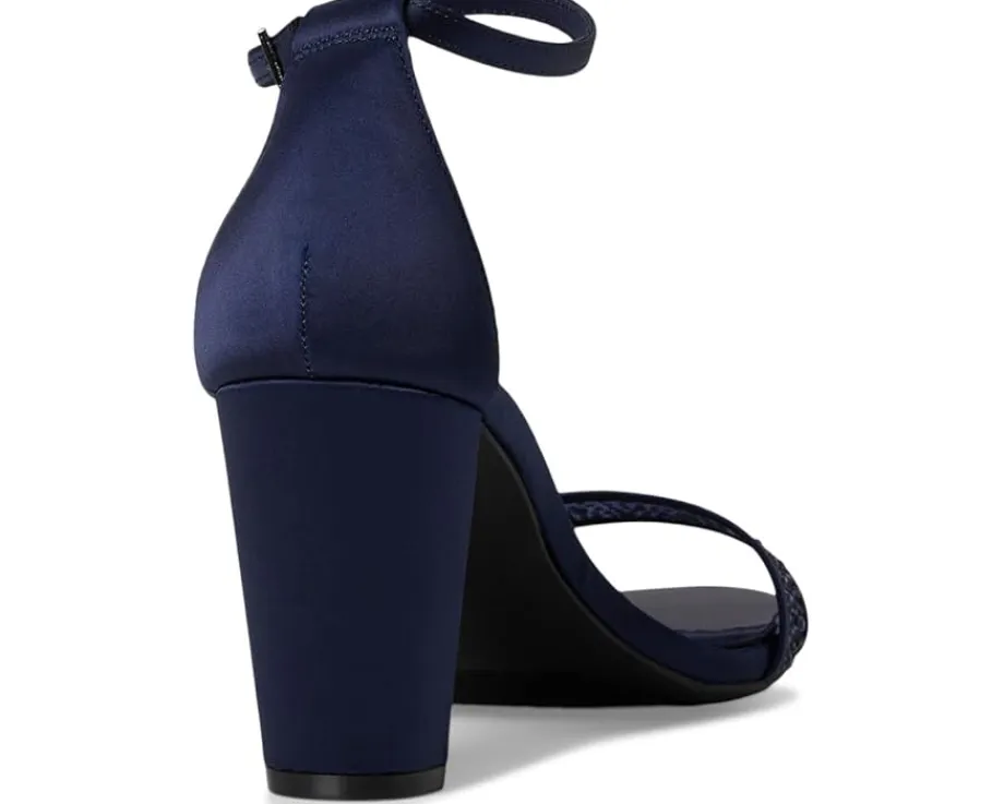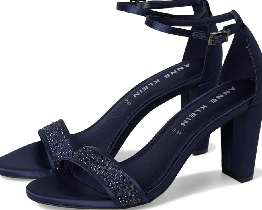 - Stun everyone with your luxurious style wearing the Anne Klein® Kourtney-C Heels. The open almond toe heels are crafted with a polyurethane upper, lining, and insole. The tall stiletto heel and mesh front strap with embellishments adds a stylish touch. Plus, the ankle strap and buckle closure ensures a secure fit.