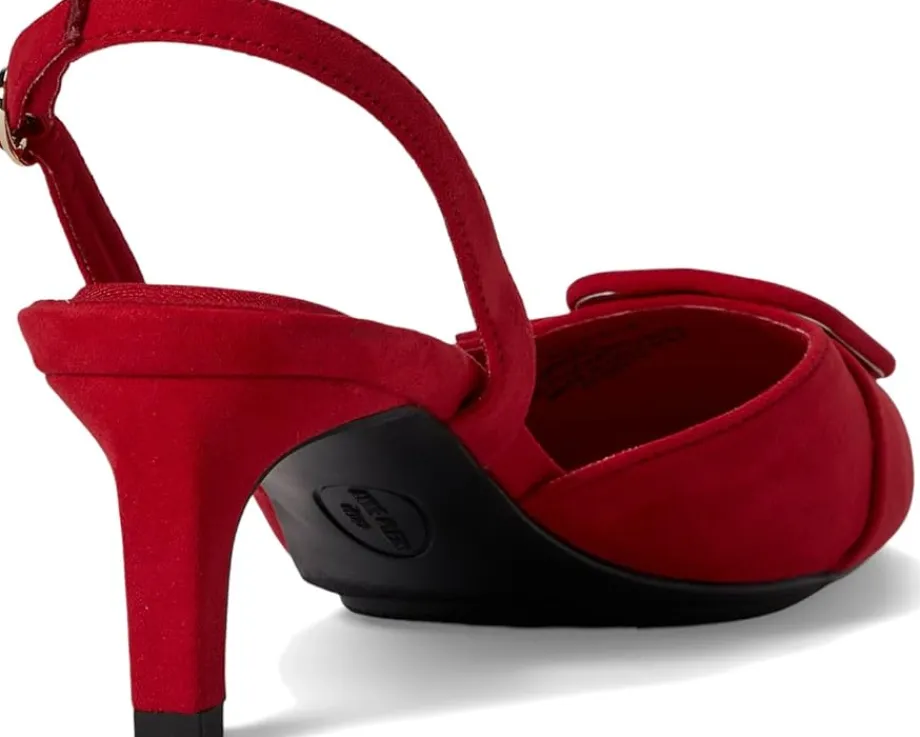 - Be the center of attractive as you step into the party wearing the chic and classy Anne Klein® Infinity Heels. Engineered with a microsuede upper, manmade lining, and manmade footbed, the heels maintain quality for the years to come. The heels feature a stylish pointed toe shape, color-coordinated buckle detailing, stiletto heel, and an ankle buckle & strap closure for easy on/off.
