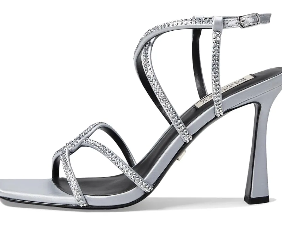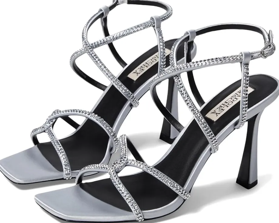 - Show your exquisite fashion statmentby complementing outfits with the Badgley Mischka® Brooke Heels. The ornamented heels are designed with a silk strappy upper, breathable leather lining, and a foam insole for enhanced comfort. It features an ankle strap and buckle closure for easy adjustability.