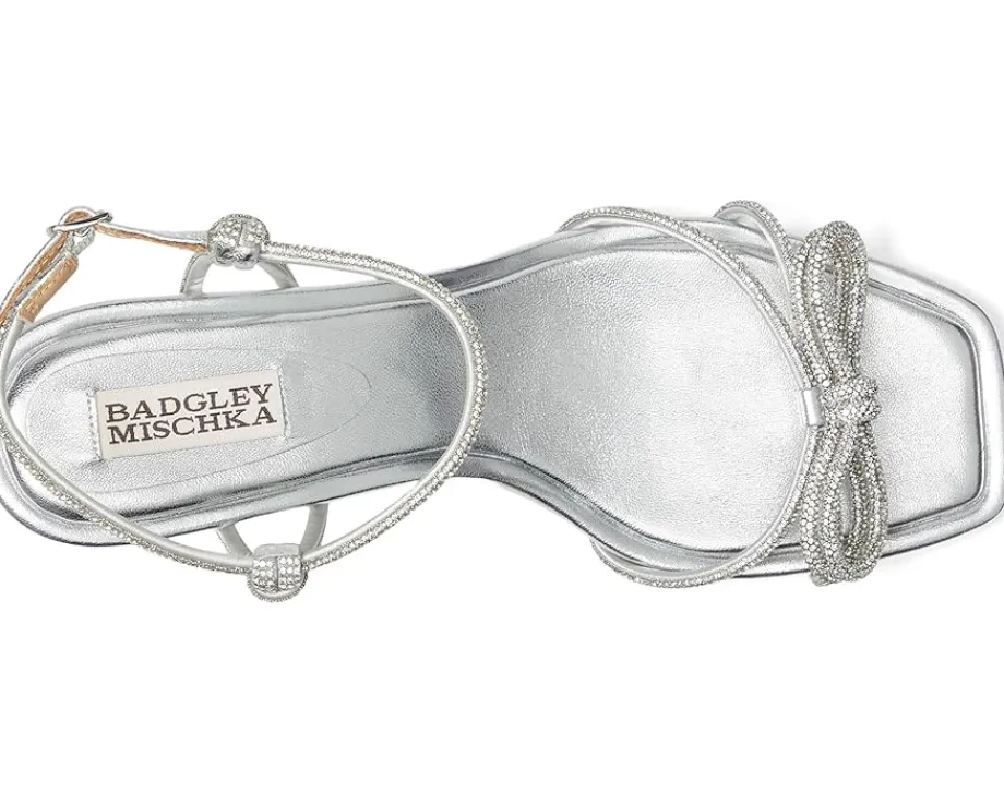 - The Badgley Mischka® Dandelion defines glamor at every step. This square toe pair features silk upper with rhinestone embellishments and buckle adjustable ankle strap closure.