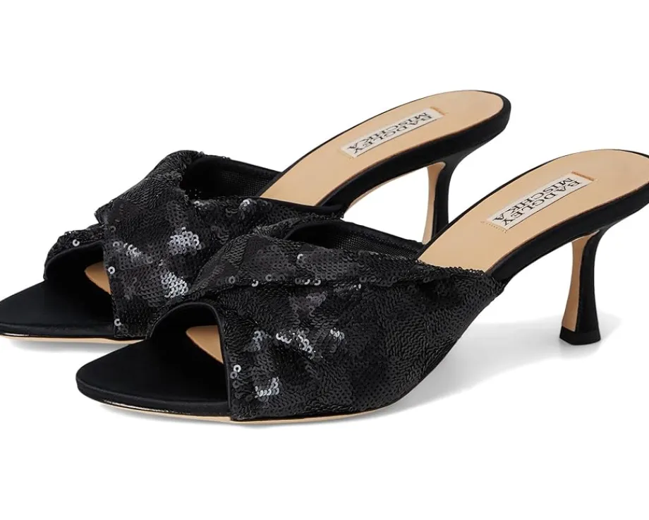 - Make a chic statement wearing the Badgley Mischka® Gailea heels! With cross-band silk upper shimmering with sequins, these heels are both elegant and eye-catching. The breathable leather lining and leather insole ensure a comfortable fit, while the low-top style and slim stiletto heel complete the look with a touch of glamour.