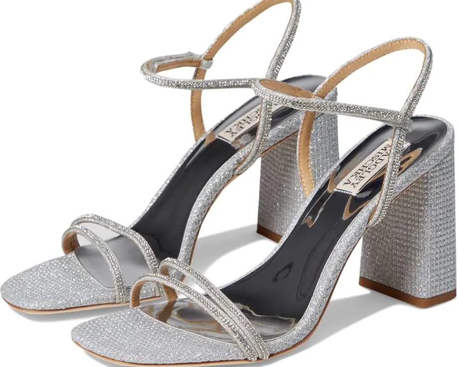 - With an embellished rhinestone detailing all over, the Badgley Mischka® Firey Heels feature a two-strap detailing on the vamp.