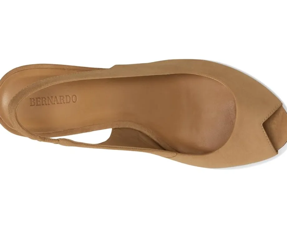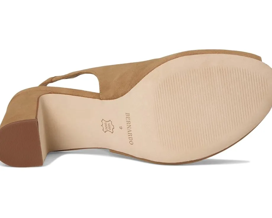 - Crafted for the city beat: Bernardo® Adell. From meetings to soirées, these slingback peep-toe heels are your go-to for everyday elegance. Crafted with a luxe leather upper, lining, insole, and outsole, Adell delivers all-day comfort without compromising on polish. The soft patent leather or supple suede adds a touch of texture, while the easy pull-on design and secure slingback strap keep things effortlessly refined. A modest block heel elevates your stride, perfect for power moves at the office and graceful glides at dinner.