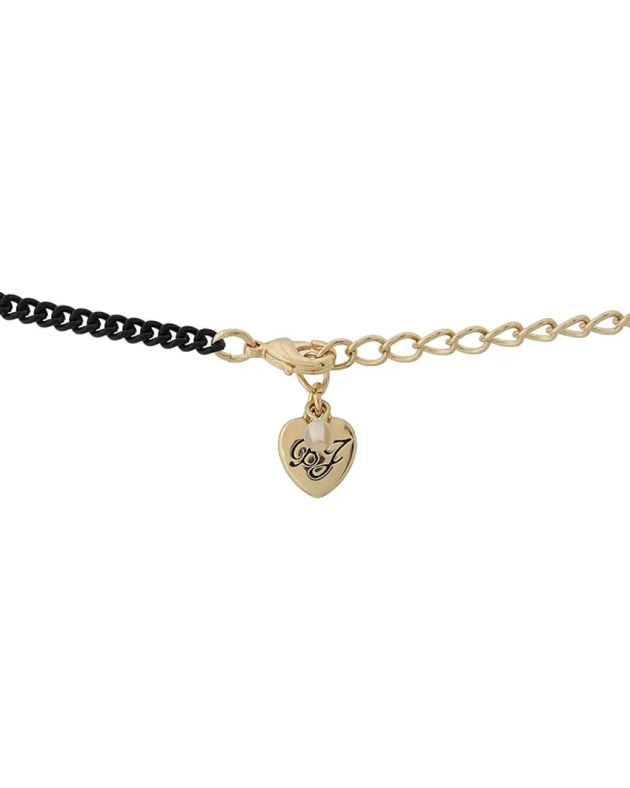 - Necklace is also embellished with pink rhinestones and a pink and black enamel-covered bow.