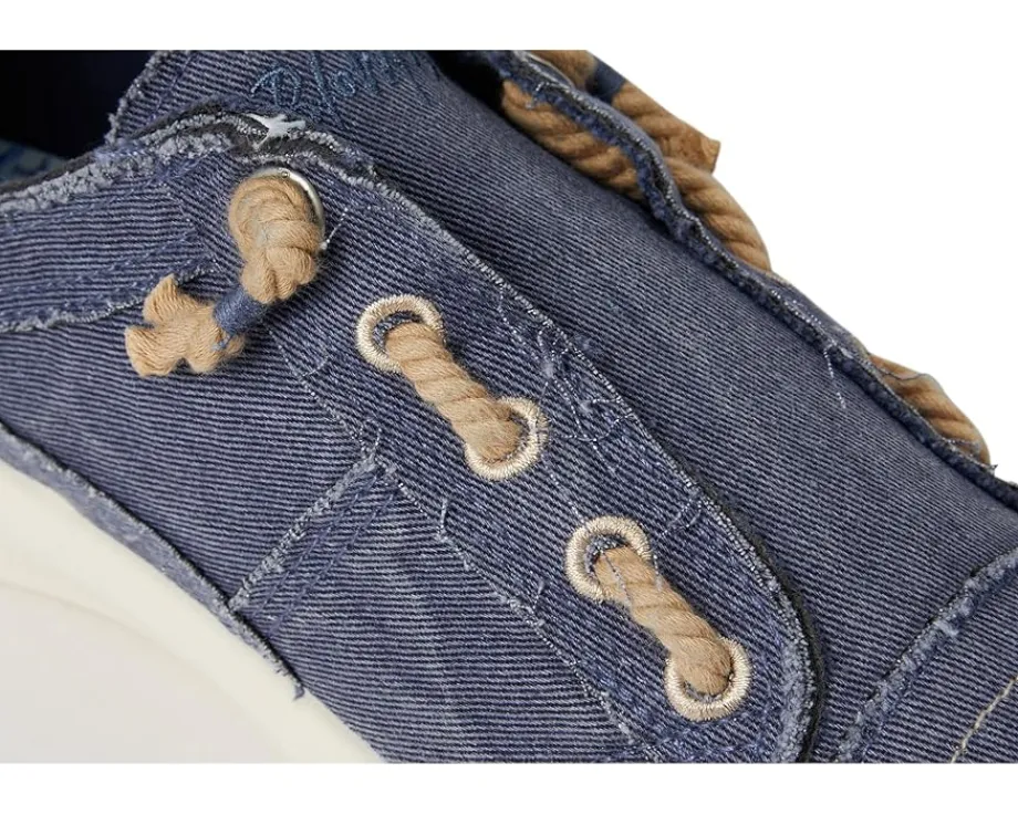 - Escape the ordinary: Blowfish® Malibu Beachside Slip-Ons. Featuring a stylish linen upper with stitching accents and faux rope laces, they add that perfect SoCal touch to your look. Slip-on design with stretch goring makes them effortless to wear, while the round toe and side logo patch complete the trendy aesthetic. With a vegan-friendly fabric upper, a cushioned EVA insole for comfort, and a durable synthetic rubber outsole for lasting wear, these shoes keep you breezy all day.