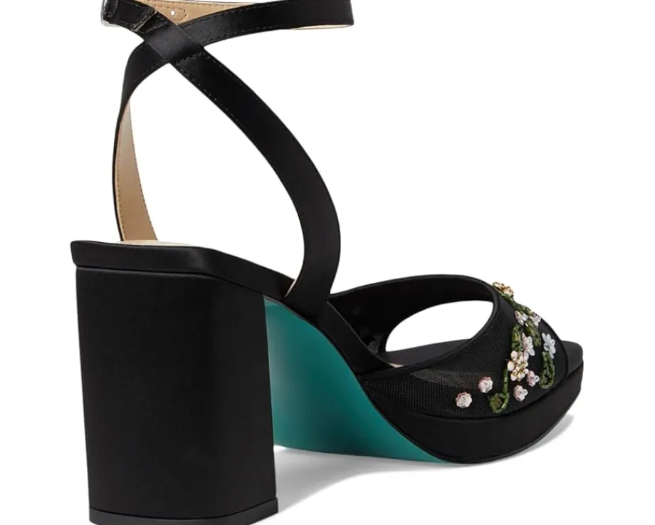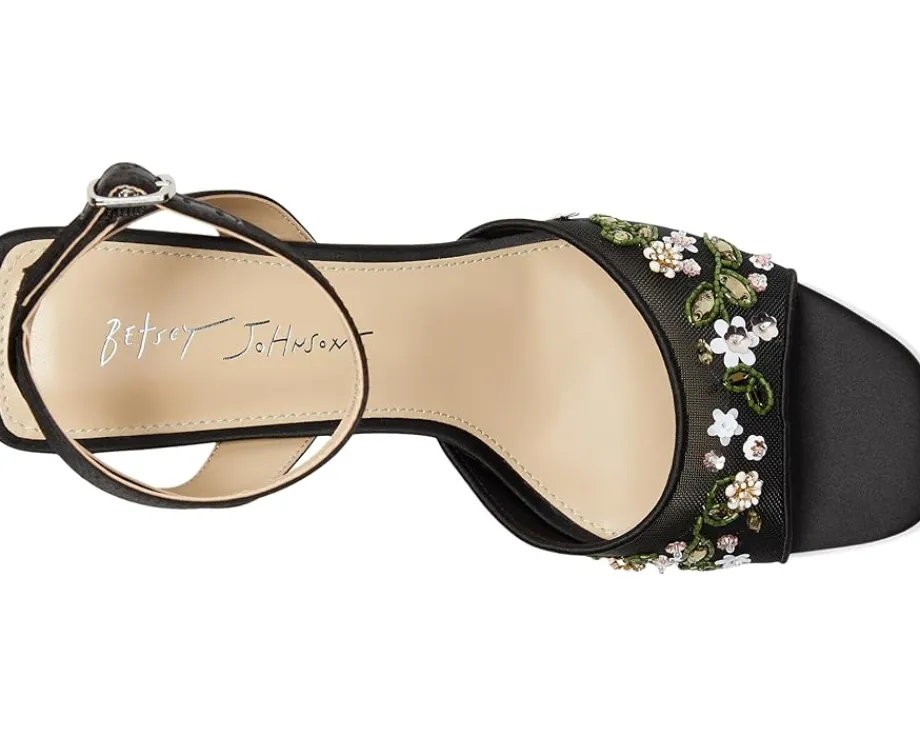 - Perfect for every elegant occasion, the Blue by Betsey Johnson™ kirra sandals are a classy pick. These heeled sandals are made of a rubber insole and faux leather lining. The faux leather upper features flower embroidery for a stylish appeal and an adjustable ankle strap for a secure fit. Match your party dresses and outfits with these stylish sandals.