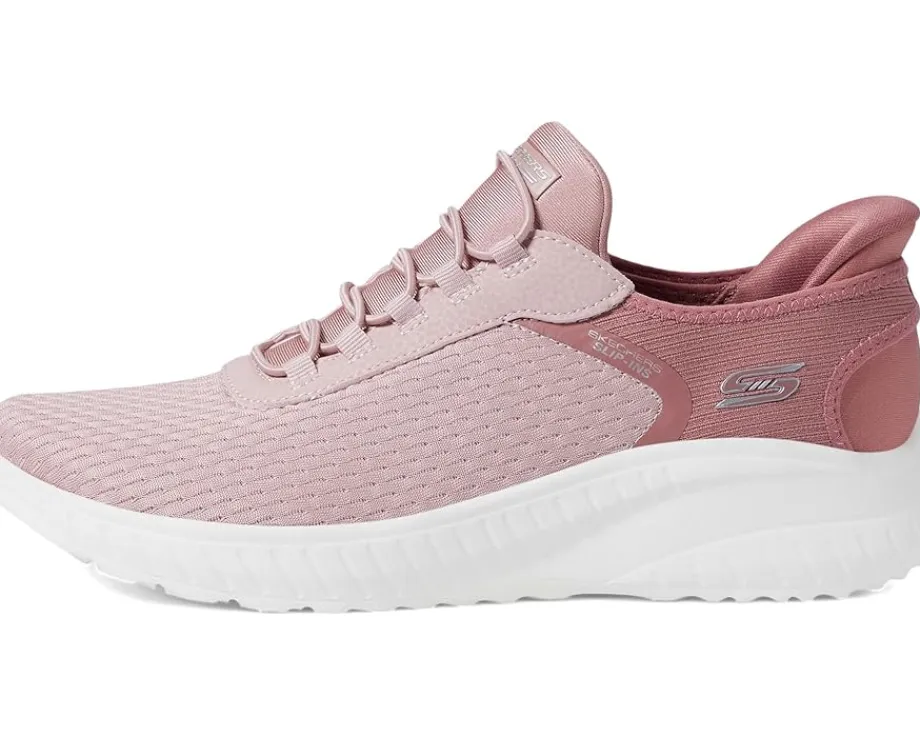 - The BOBS from SKECHERS® Bobs Squad Chaos – In Color Hands Free Slip-Ins sneakers are sure to be a go-to wardrobe essential. The shoe features elasticized lace-up panel, round toe design, and brand detailing on the left chest. Crafted from engineered knit upper.
