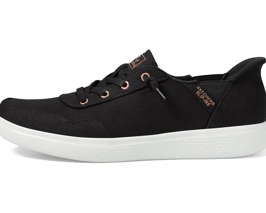 - The BOBS from SKECHERS® SKIP CUTE – B CUTE SWEET HANDS FREE SLIP-INS are the ultimate fusion of style and convenience. Embellished with a canvas upper featuring eye-catching deco laces, these slip-ins effortlessly elevate your outfit. The soft jersey lining and the Skechers Memory Foam™ cushioned comfort insole offers superior comfort and support.