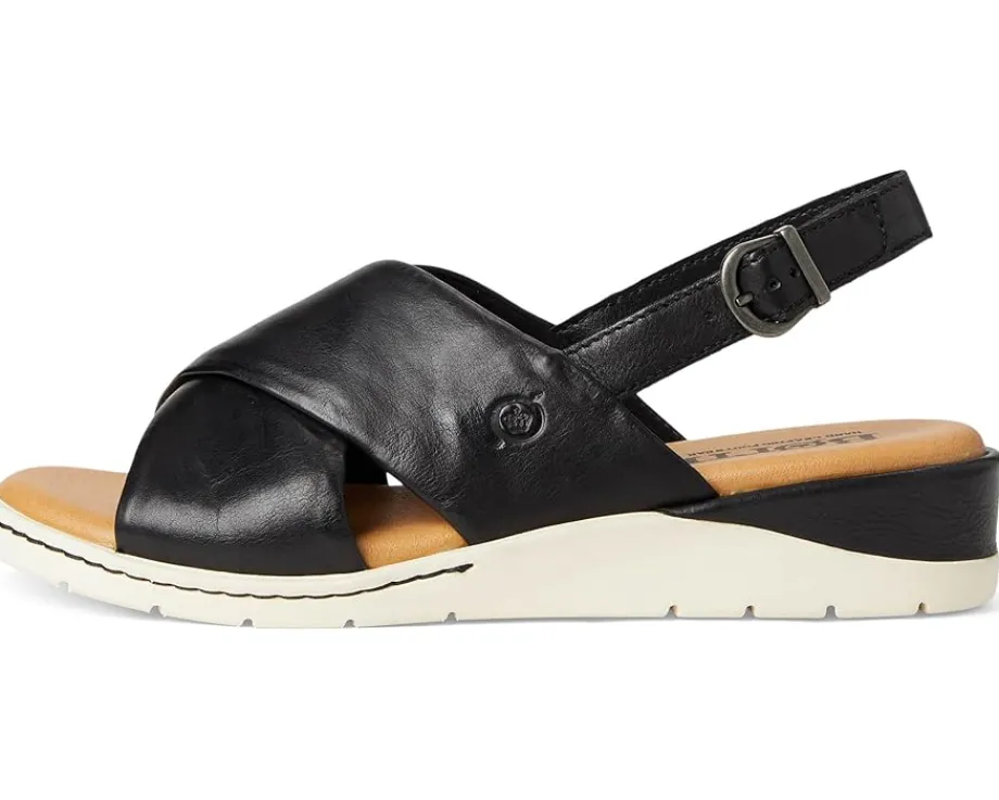 - Discover the perfect fusion of fashion and function with Børn® Mia sandals. With a unique sport-inspired design, the slip-on sandals feature soft leather upper construction. These wedge sandals offer unparalleled comfort for your active lifestyle.