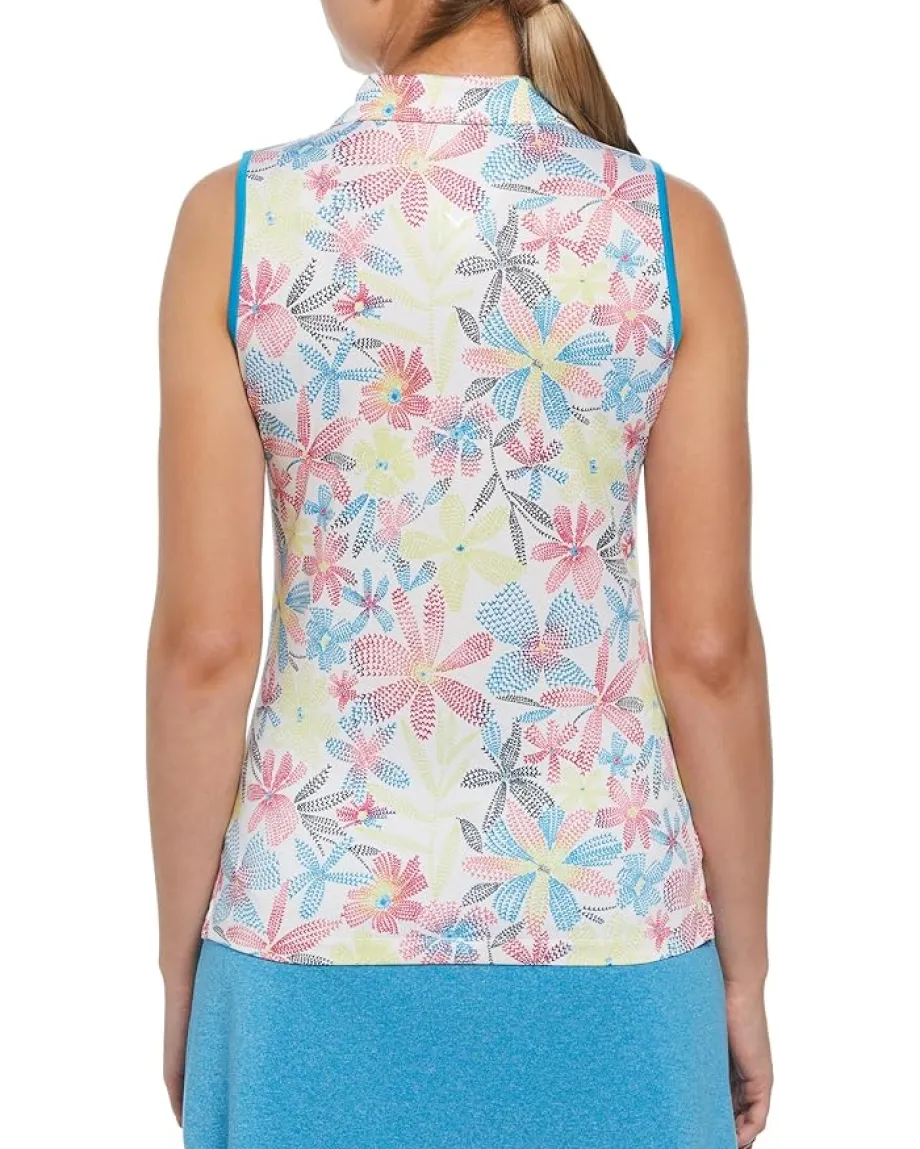 - Look and feel your best on the green wearing the Callaway® Chevron Floral Sleeveless Polo. The collared neckline with a button placket gives it a polished finish, while the sleeveless style keeps you cool and comfortable throughout your round. The vibrant allover floral print adds a playful touch to this classic piece, making it a standout in your golf wardrobe.