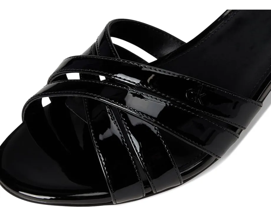 - Amp up your style in the Calvin Klein® Gabbie dress sandals. These heeled sandals are designed with a faux leather upper, cushioned footbed, and polyurethane lining. They feature an open, round toe shape, slip-on silhouette, and crisscross straps. These slip-on heels will be a staple in your wardrobe.