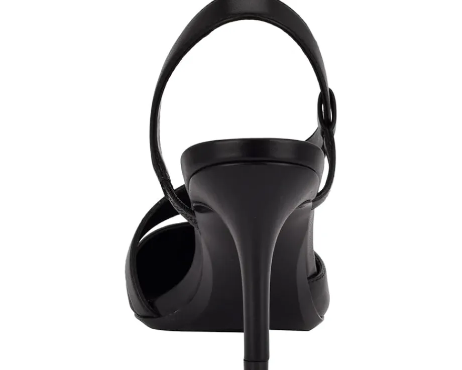 - Calvin Klein® Greer is a classy and timeless pair of dress pumps that gets a contemporary update with a stretch-infused slingback strap and a self-covered, high stiletto heel. The shoes are crafted in a pointy toe silhouette with a faux leather or textile upper, a man-made lining, and a lightly padded insole.