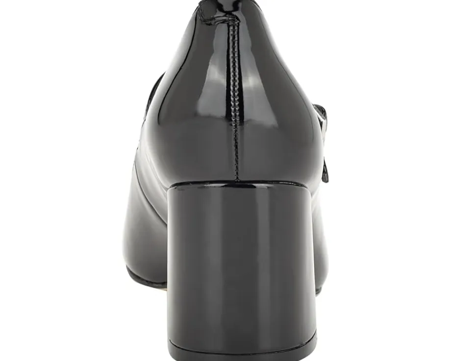 - Get ready to steal some admiring glances by wearing the chic Calvin Klein® Jatlee heels. They are designed with a square toe silhouette and stylish block heels. They have a faux-patent leather upper, man-made lining, and a padded footbed.