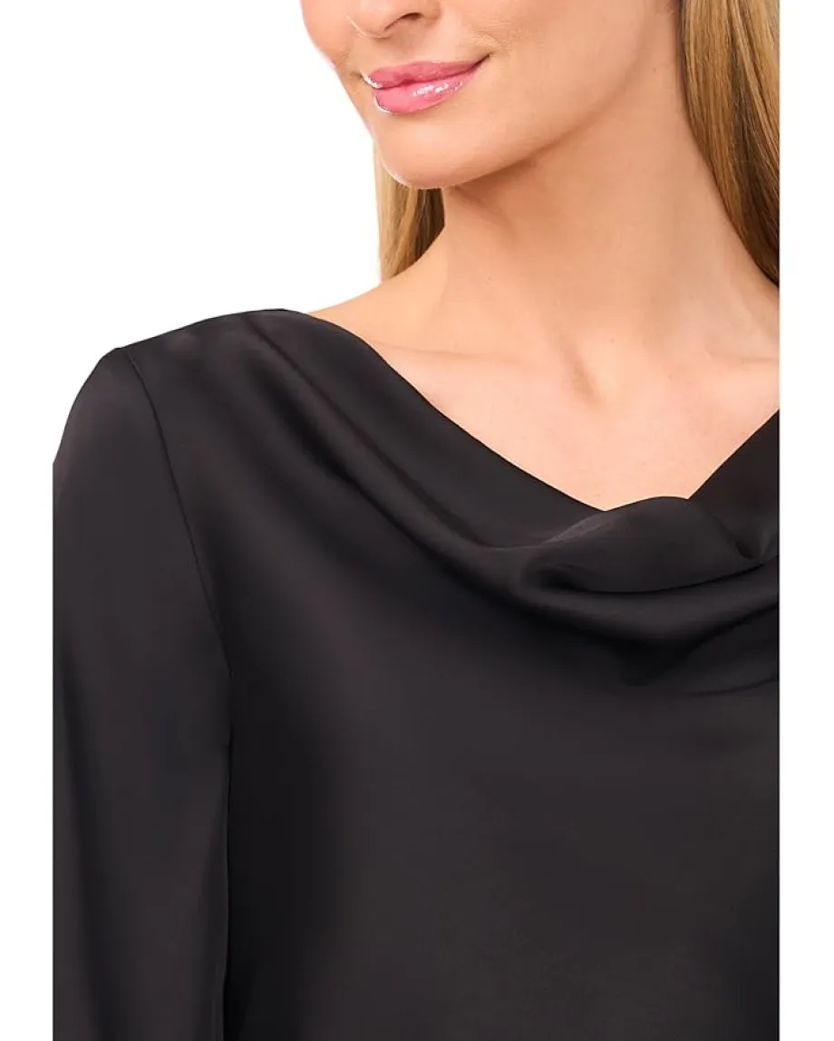 - Crafted from smooth, drapey satin, the CeCe™ Long Sleeve Satin Cowl Neck Top features an elegant cowl neckline for a sophisticated touch. The shimmering sequin cuffs add just the right amount of glamor, making this piece perfect for a night out or a festive occasion.