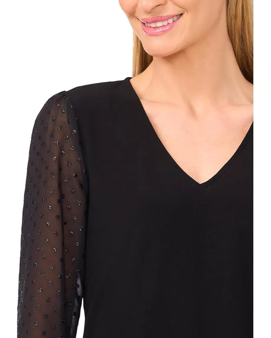 - Add a touch of shimmer to your everyday look choosing the CeCe™ Mixed Media 3/4 Sleeve Knit Top. This effortlessly chic piece features a soft knit body for all-day comfort, while the Lurex® clip chiffon sleeves add a hint of sparkle and elegance. It features a V-neckline, three-quarter-length sleeves, and a straight hem.