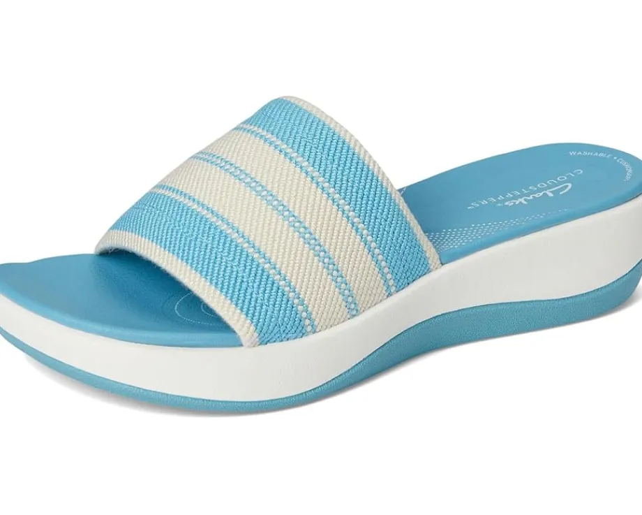 - Part of Clarks Cloudsteppers™ collection, Clarks™ Arla Hollis is all about lightness and feeling free – perfect for everything from relaxing in the garden to coastal escapes. Keeping comfort at its core, this breezy silhouette keeps steps feeling effortless thanks to a Cushion Soft™ footbed, while the curved design and stripy upper complement your foot perfectly. Soft textile upper, cushion Soft™ foam footbed offers lasting comfort. Slip-on for easy on/off, and lightweight ethylene vinyl acetate midsole supports and cushions your foot.