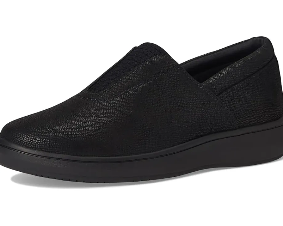 - Slip-on style with subtle elasticized detail assists easy on and off.