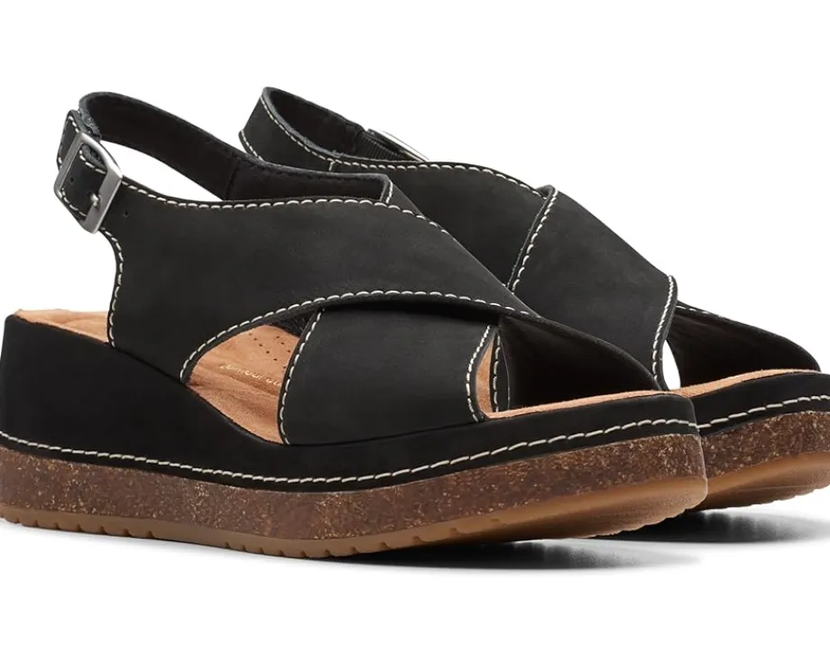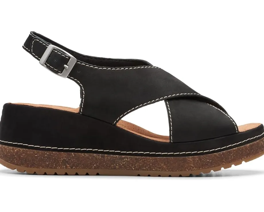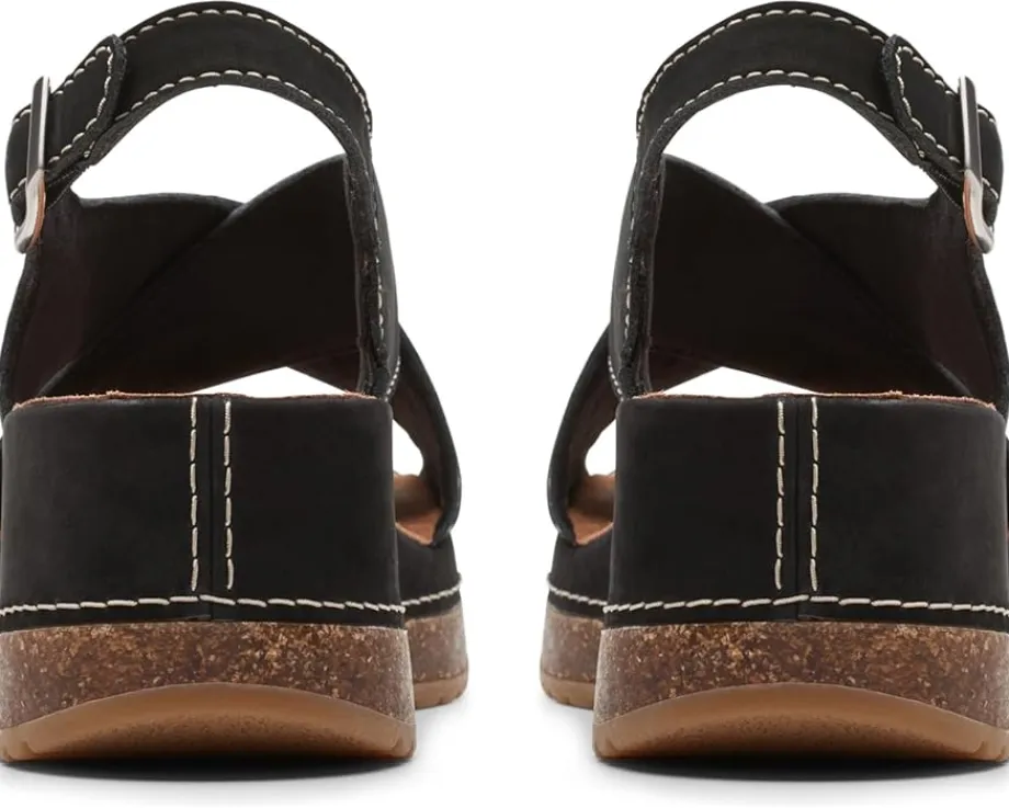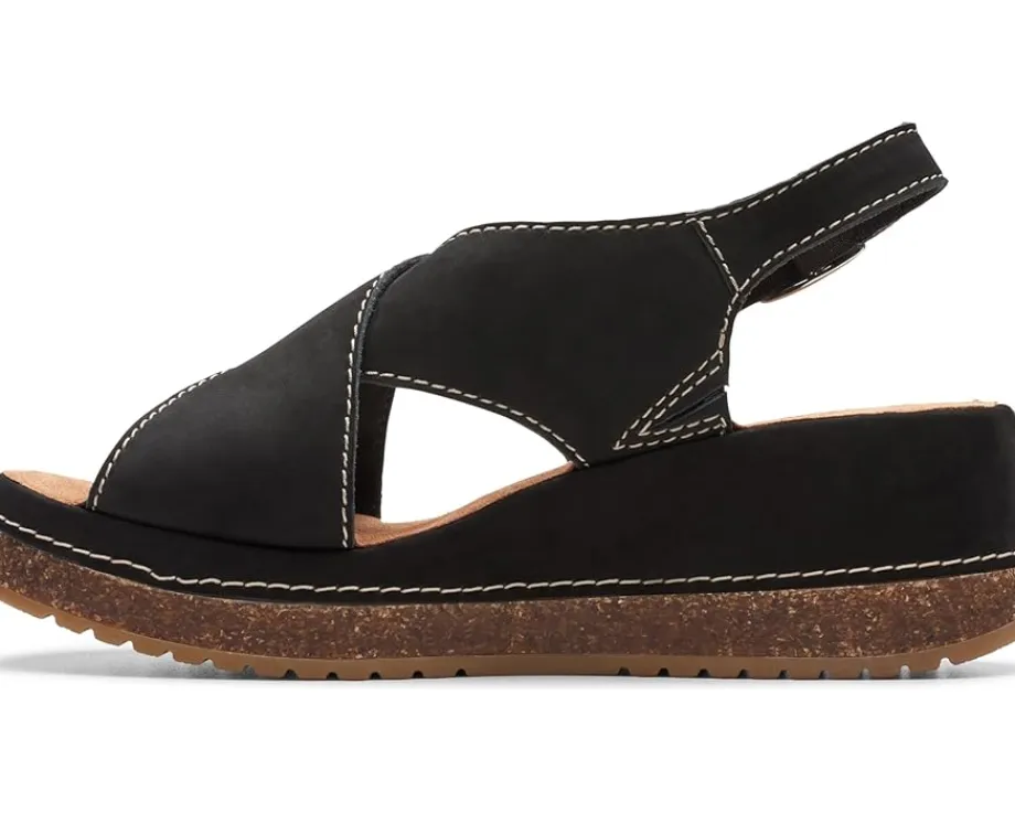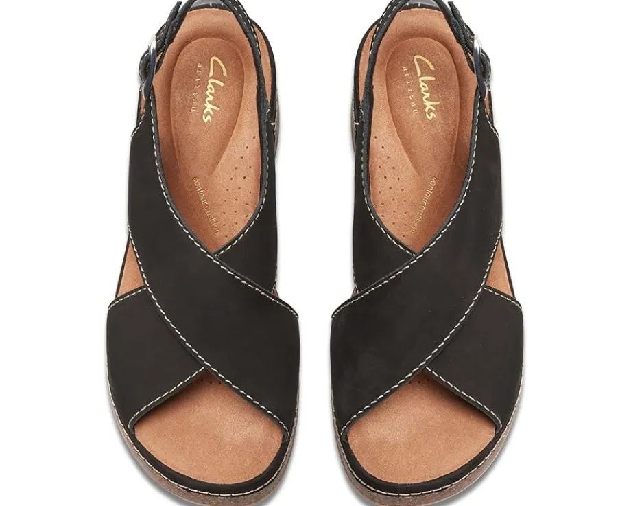 - Move out to explore the world wearing Clarks™ Kassanda Step sandals. An open toe with crossing-over wide strappy vamp and adjustable ankle strap with buckle closure ensures a supportive fit to the feet. It has leather upper, polyester lining, and rubber insole.