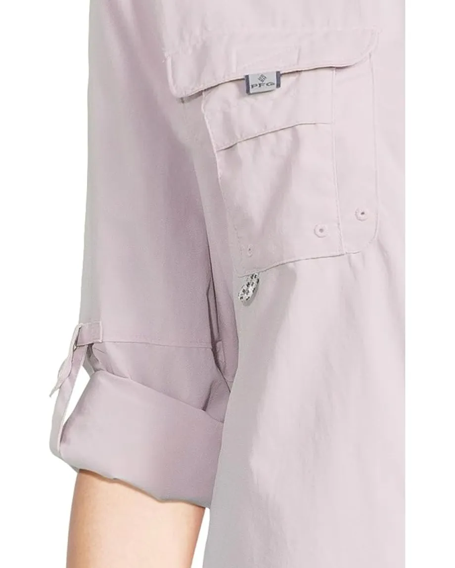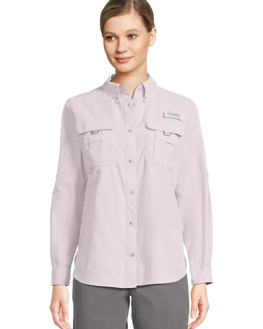 - Embrace the class wearing the Columbia® Bahama™ II Long Sleeve. Made from Omni-Shade Broad Spectrum UPF 50 sun protection fabric which is quick-drying. Featuring collared neckline, button front closure, long, rolled-up sleeves with button cuffs, two chest pockets, and curved hem.