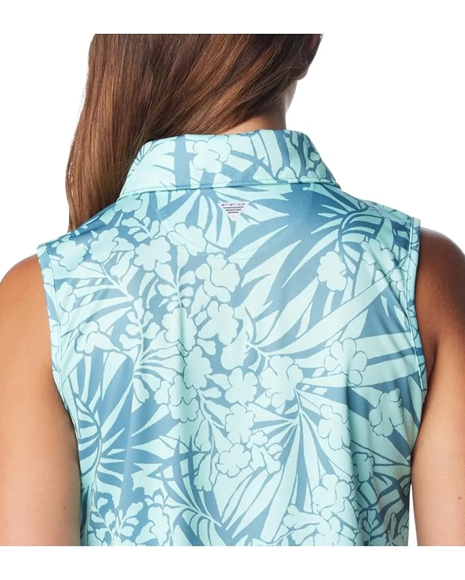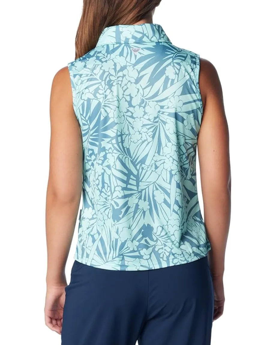 - Try this Columbia® Super Tidal Tee™ SL Polo to get a funky match with your black trousers and shoes. It has point collar with quarter front button closure placket. A slim fit, sleeveless design, and allover sketchy prints give it an elegant look for casual styling.