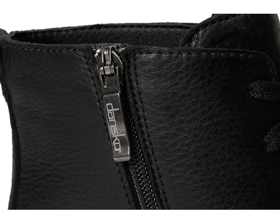 - Discover the perfect blend of comfort and style donning Dansko® Sigourney, where premium leather meets modern innovation. This ankle-high boot features a tumbled leather upper and striking multi-colored fabric lining, creating a standout style that’s as functional as it is fashionable. With a speed lacing system and inside zipper for easy adjustability, you’ll enjoy both convenience and comfort. The roomy, thermoplastic toe box ensures ample space for natural movement, while the contoured PU midsole offers exceptional arch support. The durable PU outsole, combined with the shock-absorbing, flexible polyurethane, provides stability and shock absorption, perfect for all-day wear.