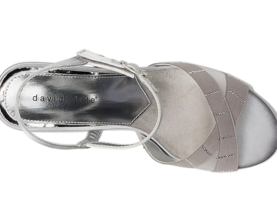 - Feast your eyes on the David Tate® Cocktail – a mesmerizing satin sandal tailor-made for special occasions. Boasting an elegant hook-and-loop ankle strap and a block heel, this enchanting footwear also comes with a suede cushioned pad under the foot for enhanced comfort and stability. It’s the perfect choice for those desiring a sleek, nylon-free look.