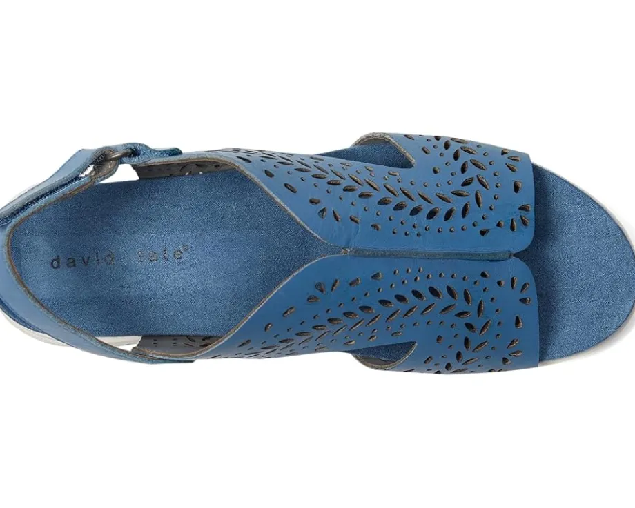 - Experience elegance and comfort with the David Tate® Moda. Crafted from leather upper, this sandal features intricate laser cutouts that add a touch of sophistication. The contoured memory foam insole provides exceptional support for extended wear, while the lightweight EVA outsole with flex grooves ensures flexibility and comfort.