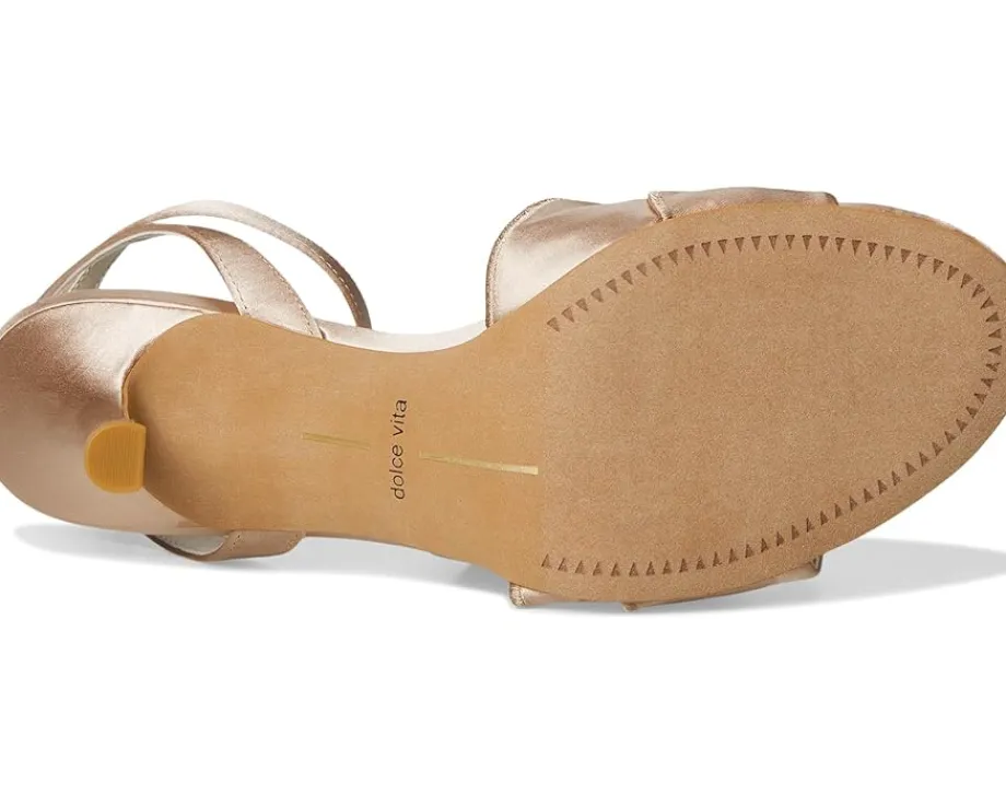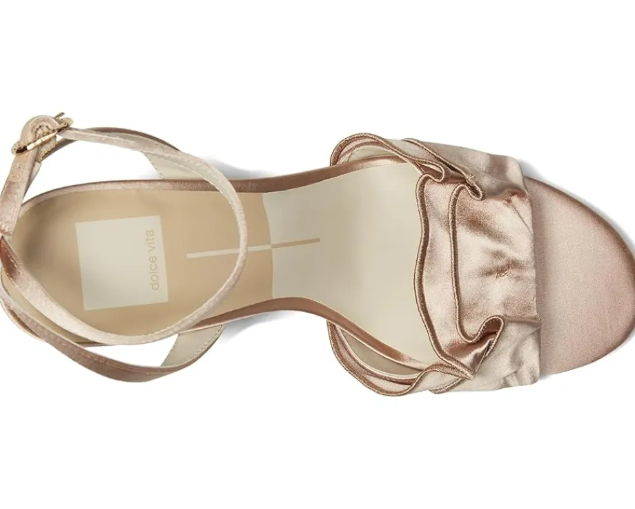 - The Dolce Vita® Lunete perfectly blends in with any ensemble while offering a standout look. Featuring a charming ruffled upper strap, the footwear is accented by a crisscross ankle strap and an adjustable buckle closure. The open almond toe silhouette adds a modern touch, while the chic kitten heel ensures comfort and style.