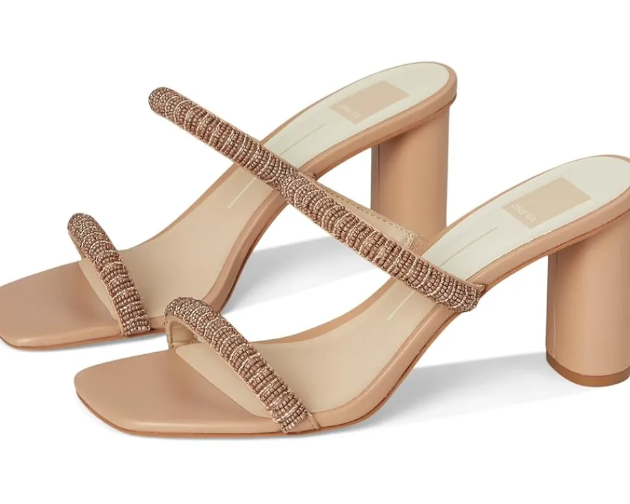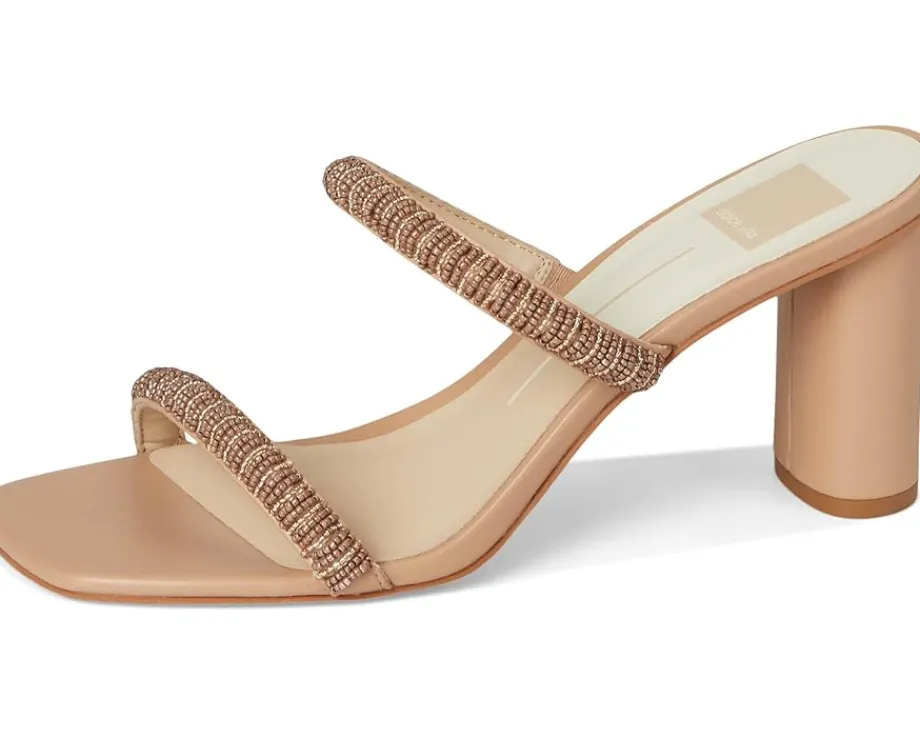 - Dolce Vita® Nolah, a stylish heeled sandal offering a chic look and versatile comfort for various occasions. Crafted from leather upper, lining, and insole, this pair of sandals features open square toe, two strap detailing, block heel, and brand detailing on the footbed.
