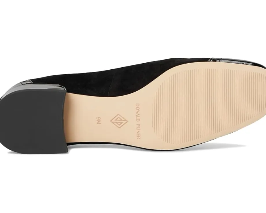 - Take on a classic style that looks polished and sophisticated by wearing the Donald Pliner® Dreww Heels. Crafted with a crepe elastic upper, leather lining, and leather insole with memory foam sock lining, the heels are perfect for both casual or formal occasions. These feature a squared toe shape and solid block heel.