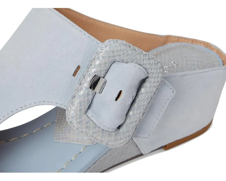 - The Donald Pliner® Ofelia sandal makes a chic statement with a T-strap silhouette, open toe, oversized buckle detail at the side, and wedge heel.