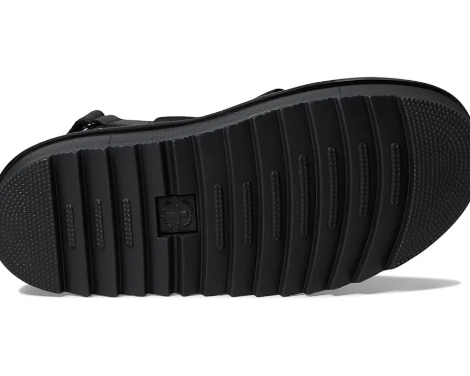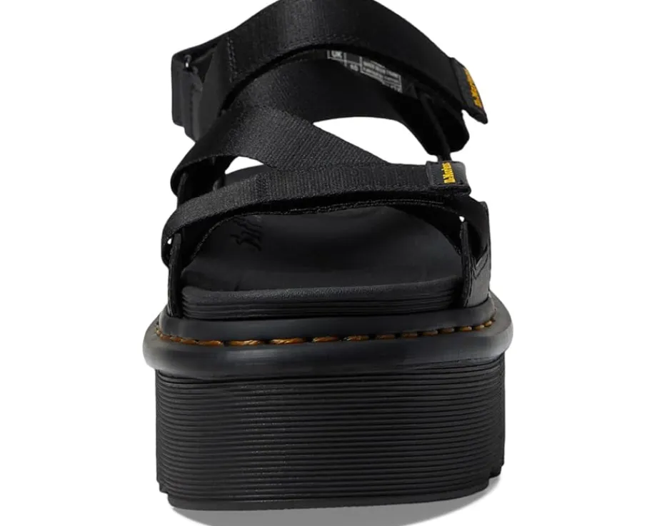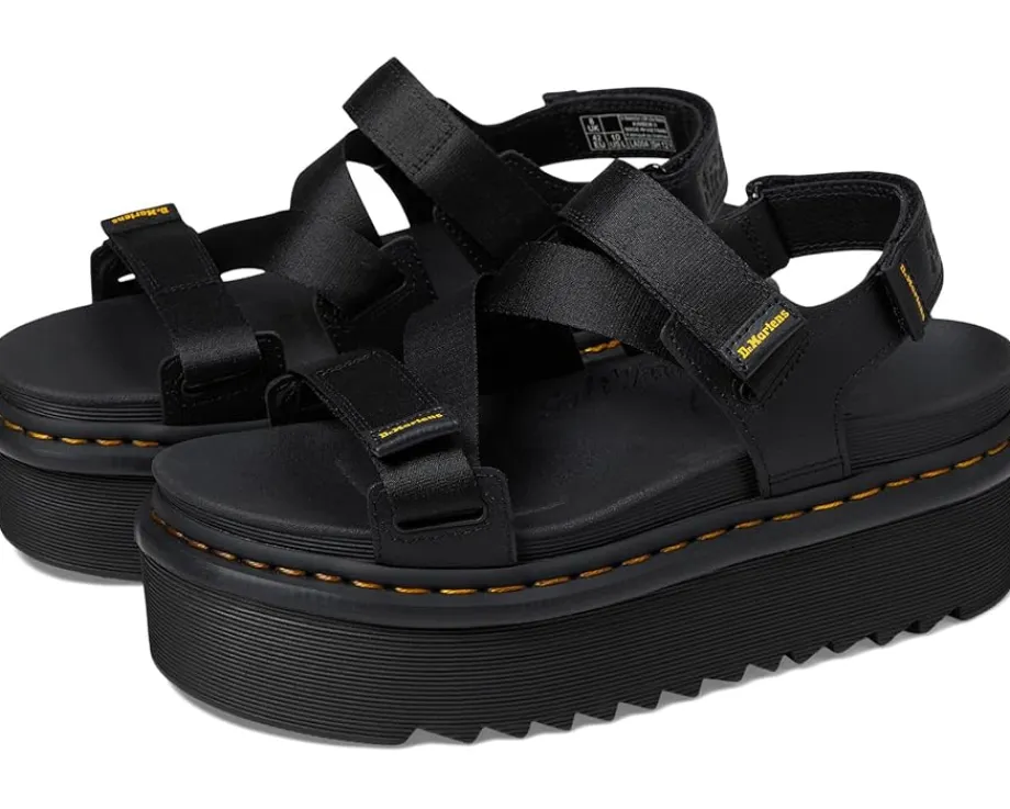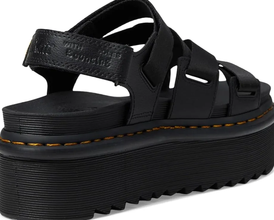 - The Dr. Martens® Kimber II sandals are designed to offer superior comfort and a bold look. The strappy PU-coated leather upper features multiple riptape straps that provide you with a secure fit. These sandals are crafted with a leather insole and lining. Finished with yellow stitching and Goodyear welt construction, these platform sandals offer superior comfort and durability.