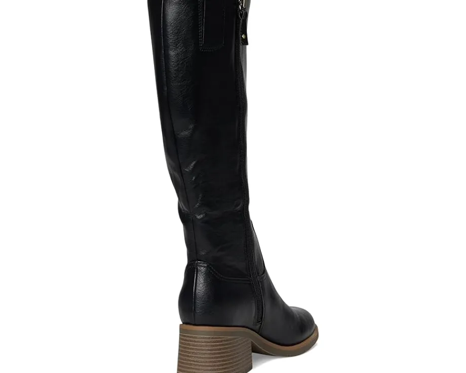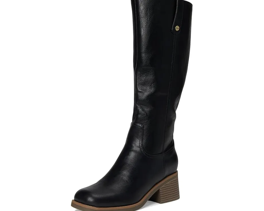 - The Dr. Scholl’s® Joplin Riding Tall Boots feature a low-chemical faux leather upper and a sleek silhouette accented by western-inspired stitching, rivet details, and a square toe. The inside zipper ensures effortless on/off wear, while the stacked block heel and lightweight blow thermoplastic rubber outsole offer stability with every step. Crafted with linings and topcloth partially made from recycled plastic bottles, plus a recycled toe box and heel counter, the Joplin also features a cushioned insole made with 15% plant-based BLOOM® foam. Designed to promote freshness and long-lasting comfort, the insole technology supports your stride while minimizing odor and moisture buildup—so you can move confidently.