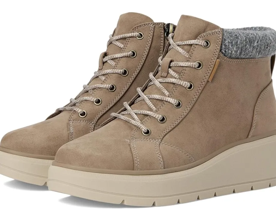 - Comfortable and durable, the Dr. Scholl’s® Nice Day Max Alpine boots feature a faux fur collar that keeps your feet warm and cozy. The partially recycled wool blend upper of these boots comes with a lace-up closure for a secure fit. These ankle boots are made of a 15% cushy plant-based BLOOM® foam insole with Insole technology that delivers cushioning, comfort, and support. The fabric linings, topcloth, toe box, and heel counter are partially made from recycled plastic bottles. Get ready for the cold weather wearing these lace-up boots.
