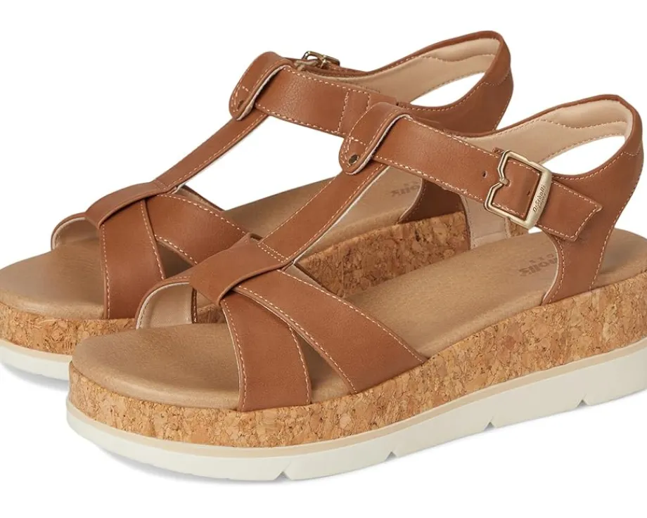 - The Dr. Scholl’s® Once Again is a comfy, casual womens sandals with an espadrille-inspired design. These open round-toe sandals are crafted with a low chemical faux leather upper with a hook-and-loop closure for easy on/off, faux leather lining. and foam insole. These feature an ankle strap & buckle closure along with a stunning wedge heel detail.