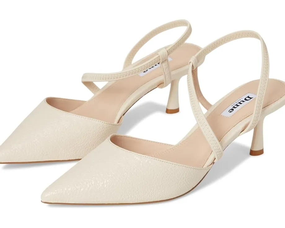 - Incorporating key micro-trends into a classic silhouette, the Dune London™ Citrus shoes strike the ideal balance between contemporary and timeless elegance. Expertly crafted in-house with a suede upper, these heeled shoes are cut for a chic pointed toe design, while the vamp is accented with skinny asymmetric strap detailing. These shoes rest on low-flared heels that are sprayed for a directional matte effect. The EVA insole and lining make them a comfortable choice. From business meetings to fun parties, transition effortlessly wearing these suede shoes.