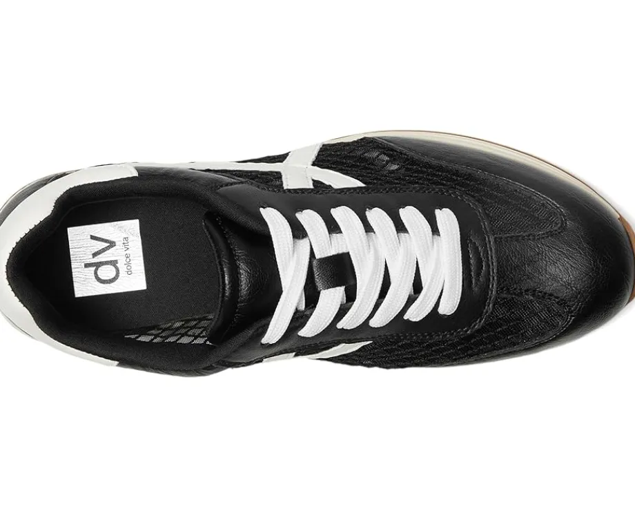 - Elevate your sporty style and run around with comfort wearing the DV by Dolce Vita® Joque Sneaker. The low-top sneakers is crafted with a polyurethane upper, nylon lining, and nylon insole. The lace-up closure ensures a secure fit on the go, while the striped & threaded detail on the sides adds a funky vibe.