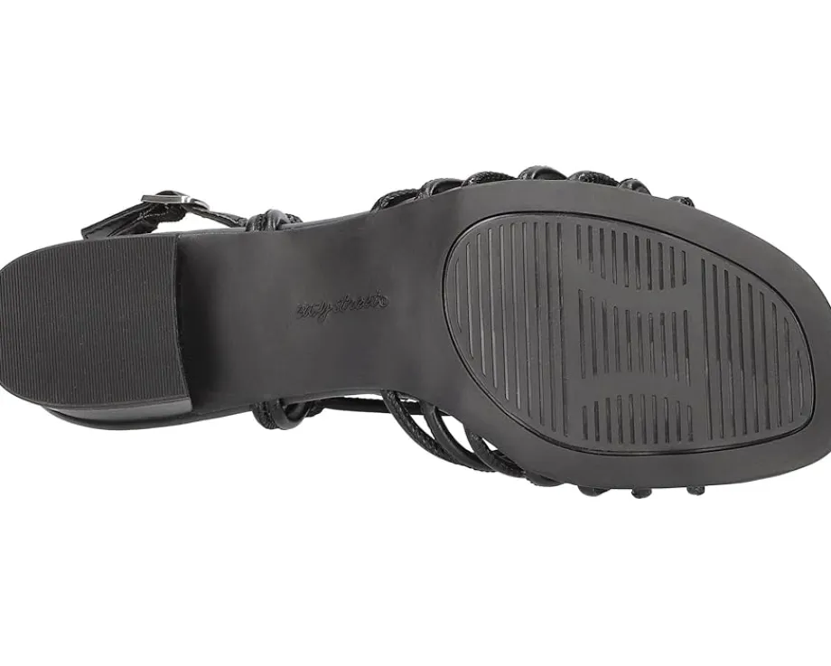 - Feel like a queen wearing the classy Easy Street® Sicilia. Crafted from leather upper, this pair of sandals features woven strappy tubular design, open round toe, block heel, and adjustable posted slingback strap for a custom fit. It comes with padded foam insole for added comfort.