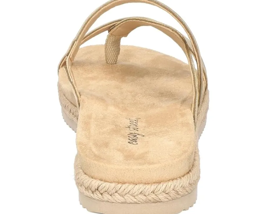 - Feel the difference with an enhanced level of comfort as you wear Easy Street® Song Flat Sandals. The slip-on footwear features multi-strip faux leather upper and lining construction with faux suede padded insole.