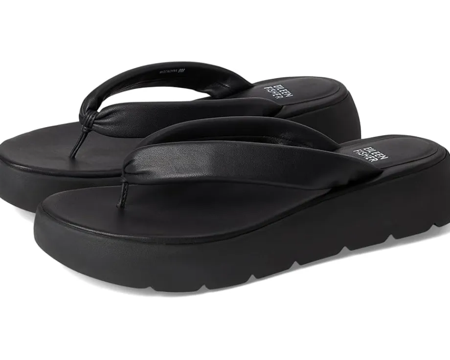 - The Eileen Fisher® Jelly Thong is a perfect summer thong with a puffy strap on the foot making it soft and comfortable. Crafted from leather upper, lining, and EVA insole, this pair of sandals features open round toe, padded footbed, wedge heel, and slip-on style.