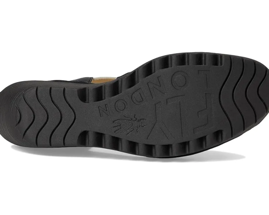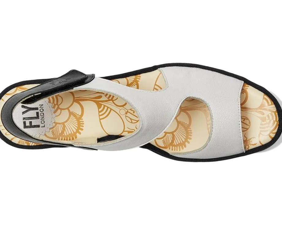 - A hook-and-loop ankle strap makes the FLY LONDON® YOXA576FLY easy to get on and off. The cut out design gives it a cool and unique look. Comfortable enough to wear all day, the heel-to-toe cushion insole, rounded toe shape with leather uppers and linings cradle your feet.