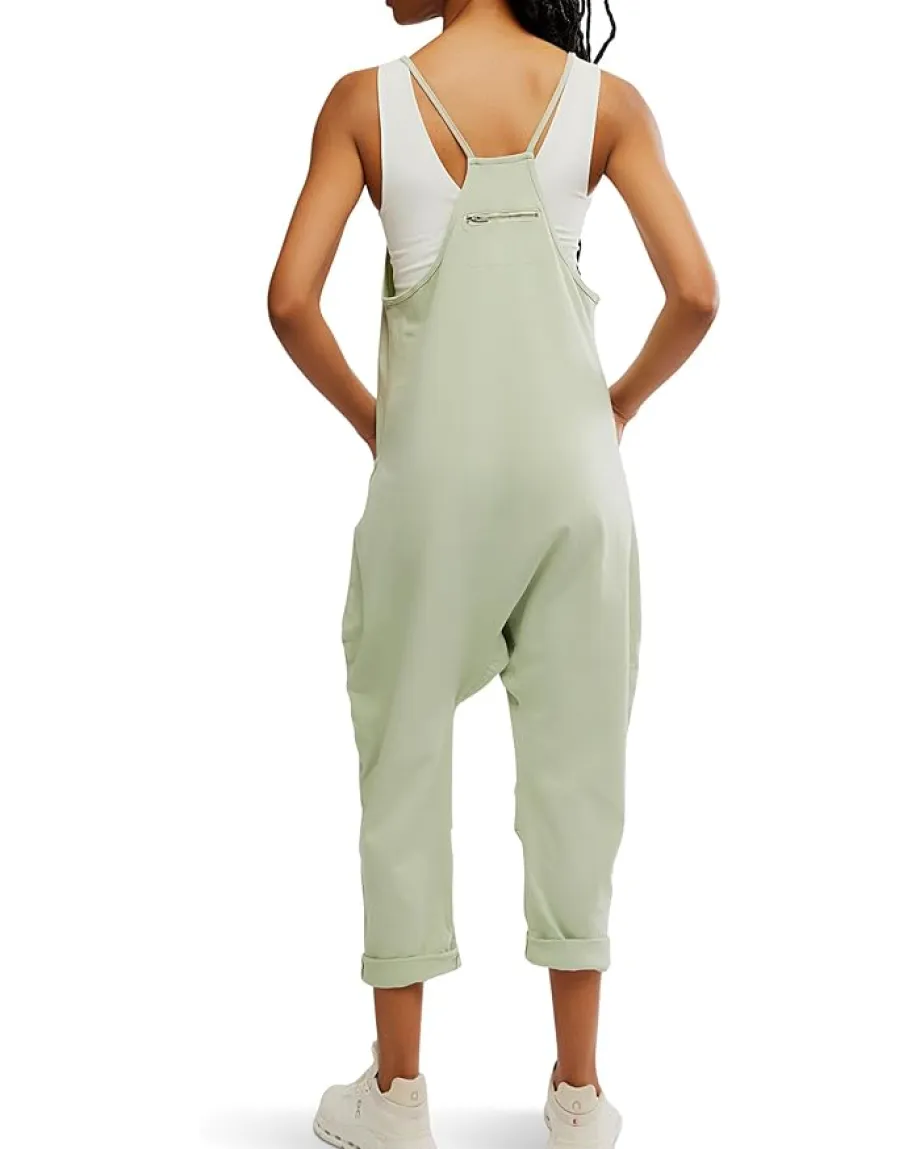 - Embrace your free spirit with the FP Movementâ„¢ Hot Shot Onesie! This trendy piece features a sleeveless, round neck, racerback silhouette, oversized front patch pockets, dropped armholes, and a back pocket with zippered detail. Soft and comfy, its slouchy, relaxed fit and dropped crotch design provide ultimate comfort, while convenient side pockets keep essentials close.
